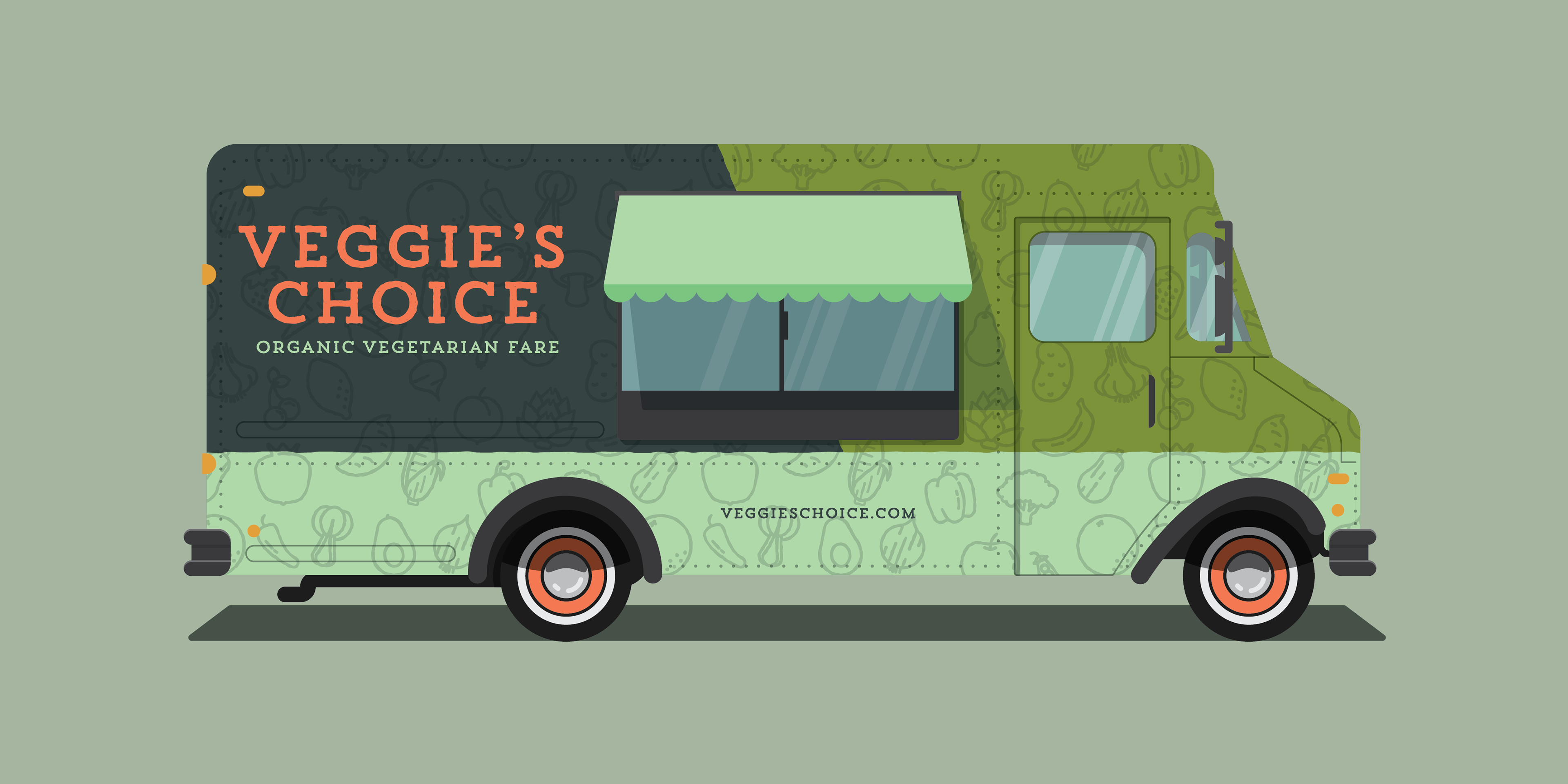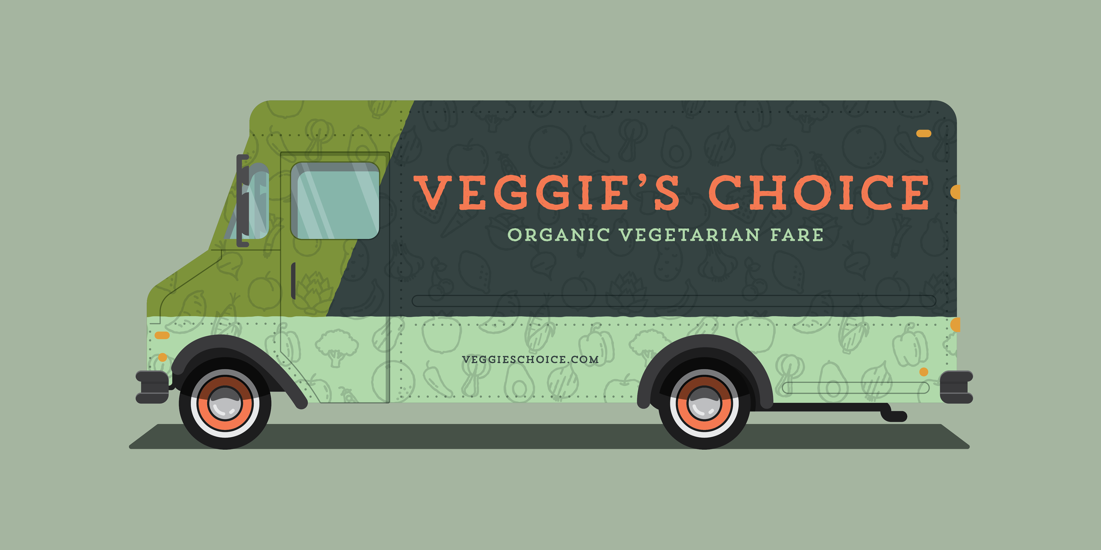 This project was for fun using a brief form briefbox.me. A company called 'Veggie's Choice' is looking for a custom designed vehicle wrap for their organic, vegetarian food van which tours festivals during the summer months. They have no existing brand so this was considered when designing the van. They want a design and color palette which highlights their organic, vegetarian produce.